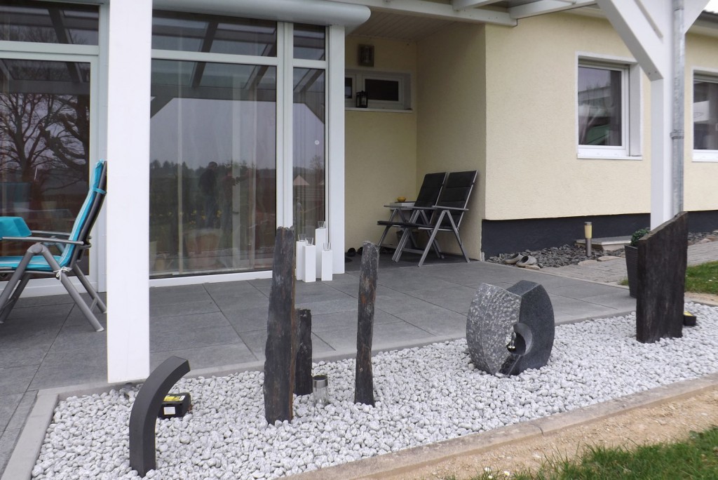Aus Schiefer bieten wir Ihnen auch viele weitere Möglichkeiten der Gartengestaltung, z.B. Schiefer-Bänke, Sitzgruppen mit Schiefertisch und 2 Bänken, Schiefersplitt in verschiedenen Körnungen, Garten- und Wegeplatten, Polygonalplatten, Findlinge, Palisaden, Bretter für die Hangabstützung und vieles mehr.